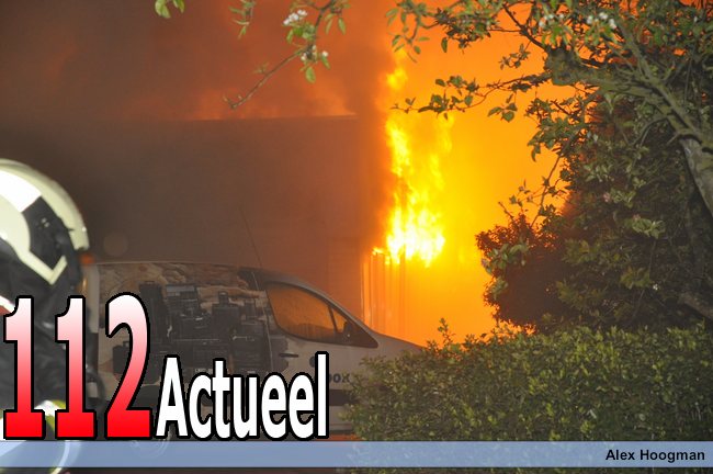 Even na middernacht brak de brand uit en aan het einde van de nacht was het vuur onder controle. De brandweer is waarschijnlijk nog wel even bezig met nablussen.