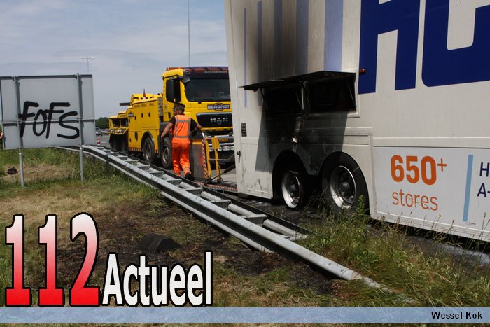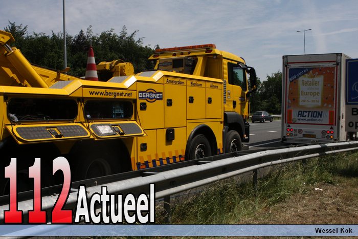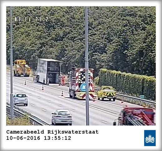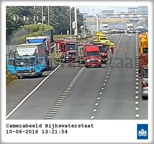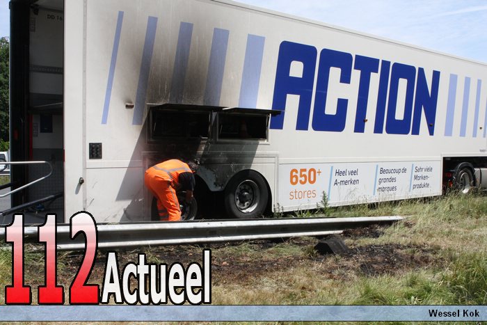De A1 ter hoogte van Naarden richting Amersfoort is vrijdagmiddag afgesloten geweest door een brand in een vrachtwagen. De brand is waarschijnlijk ontstaan door een klapband. De vrachtwagen chauffeur van de vol gelanden Action truck parkeerde zijn vrachtwagen op de vluchtstrook. . Terwijl het 'slachtoffer' aan het belllen was voor hulp zag hij dat er vlammen uit de achterkant van zijn truck kwamen.Collega chauffeurs deden een bluspoging, maar het uiteindelijke vuur werd geblust door de brandweer. De chauffeur merkte op dat de wagen zo economisch geladen was dat er geen ruimte meer was voor reservebanden of een brandblusser.