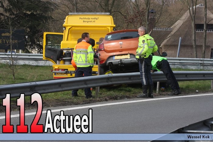 Een bestuurder is vanmiddag op de A1 bij de afrit van Laren boven op de vangrail beland met zijn auto. Hulpdiensten hebben de bestuurder bevrijd en is per ambulance naar het ziekenhuis gebracht.