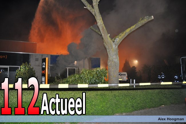 De brand woedde in een pand van Apox, een groothandel in medische artikelen. Het gebouw is verloren gegaan en een naastgelegen bedrijf raakte zwaar beschadigd door de bluswerkzaamheden.