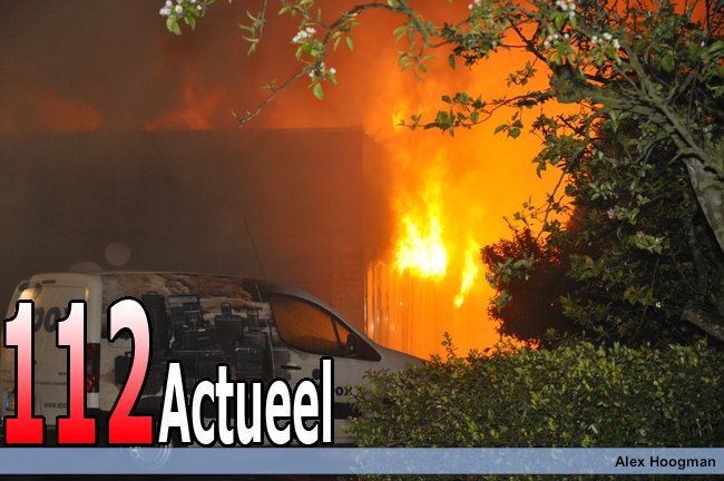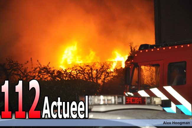Even na middernacht brak de brand uit en aan het einde van de nacht was het vuur onder controle. De brandweer is waarschijnlijk nog wel even bezig met nablussen.
