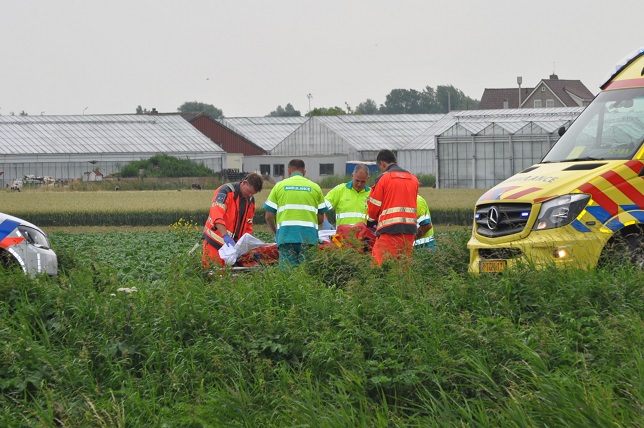 Vanmiddag is er een heftig ongeluk gebeurt op de Hoofdweg in Buitenkaag [gemeente Haarlemmermeer] Een scooter reed over het fietspad toen een landbouwspuit op het land aan het draaien was. Door het draaien kwam er een gedeelte van de spuitarm over het fietspad heen Door de klap werd de scooterrijder van zijn brommer geslagen. De persoon is met ernstige verwondingen naar het ziekenhuis vervoerd.