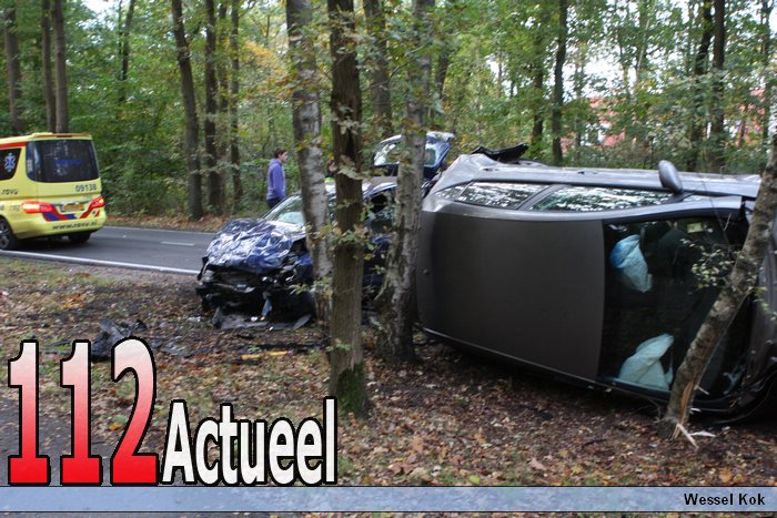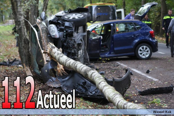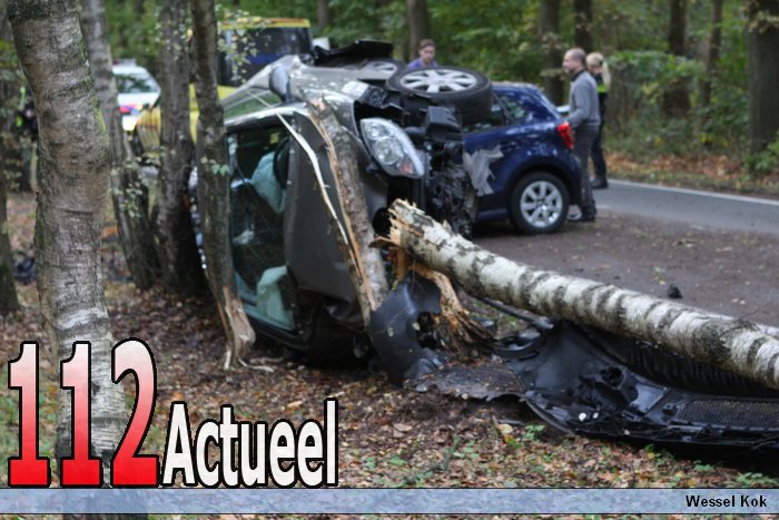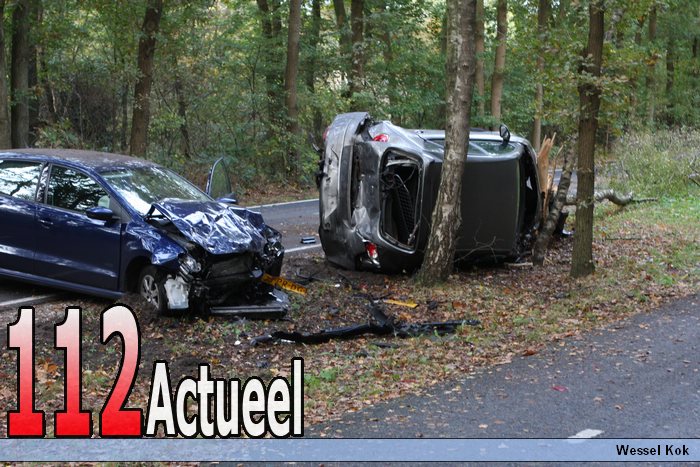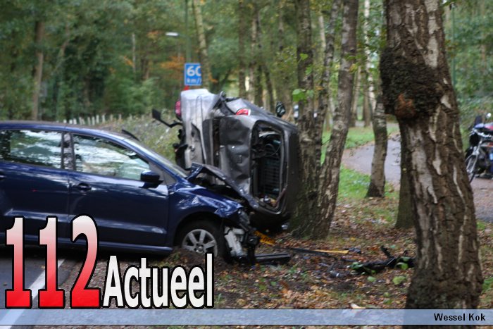 Op de Zandheuvelweg in Baarn zijn vrijdagmiddag twee auto's met elkaar in botsing gekomen net na bij de ingang van sherpa. Door de klap vloog een auto tegen een boom aan en kantelde. Of er gewonden zijn gevallen is onbekend de Zandheuvelweg blijft voorlopig afgesloten voor het verkeer. De voa doet onderzoek. Alle twee de voertuigen zijn total loss. De blauwe auto was een voertuig van de politie.