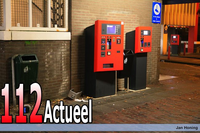 Onbekenden hebben van donderdag op vrijdag de betaalautomaat van de parkeergarage 'De Olmen' aan de Olmenlaan open gebroken. Onderdelen van de betaalautomaat liggen verspreid op de straat. waarschijnlijk is het geld uit de automaat gehaald. Dit moet blijken uit videobeelden die gemaakt worden bij de automaat. Vorige maand was deze betaalautomaat ook al opengebroken. Toen werd er ongeveer iets van 400 euro uitgehaald. Er zijn extra maatregelen getroffen maar deze zijn dus niet goed genoeg.
