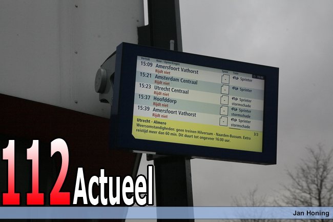 De weg tussen Hilversum en Bussum ter hoogte van de watertoren is geheel afgesloten voor al het verkeer. Boven op de watertoren ligt het dak gedeeltelijk los. Deze delen kunnen op de rijbaan of spoor terecht komen. Aan alle kanten is de weg afgesloten. Dit veroorzaakt een grote opstopping in Bussum. De mensen moeten omrijden via de Nieuwe 's Gravelandse weg om van of naar Bussum te komen. Update: Inmiddels is de weg weer vrijgegeven