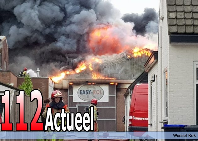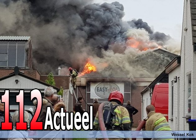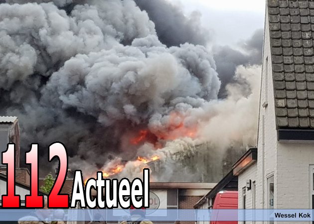 De brandweer meldt dat er mogelijk asbest vrijkomt bij de brand.