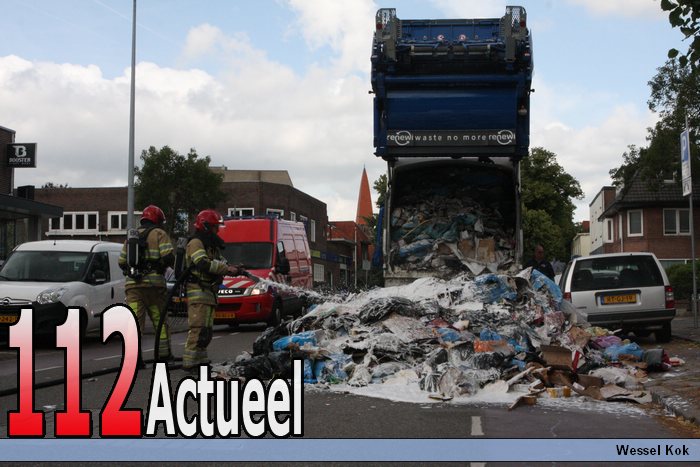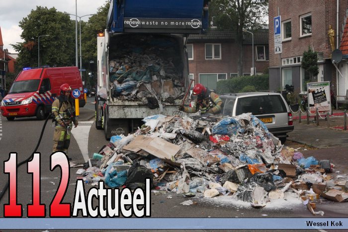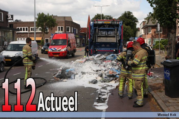 In een laadruimte van een vuilniswagen is dinsdagochtend rond 10.30 brand uitgebroken aan de Gijsbrecht van Amstelstraat in Hilversum. De lading vuilnis moest midden op straat worden gedumpt zodat het vuur geblust kon worden.