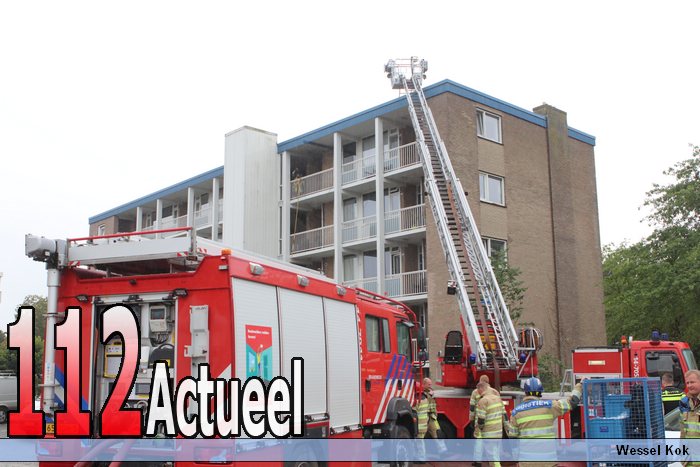 Aan de Lange Heul in Bussum heeft vanmiddag korte tijd een felle brand gewoed op de bovenste etage van een appartementencomplex.