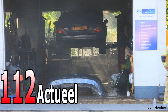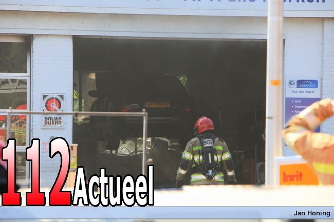 De garagehouder was sleutelen aan een auto. Hij liep even weg. Toen hij terugkwam, stond de auto in brand.