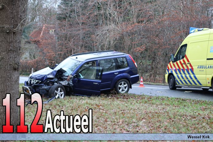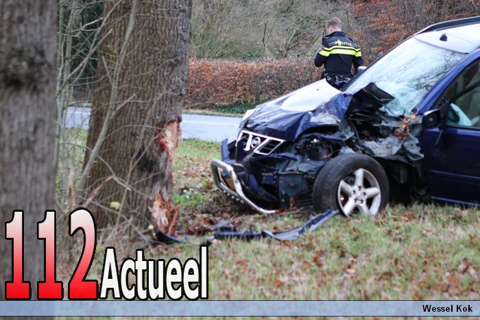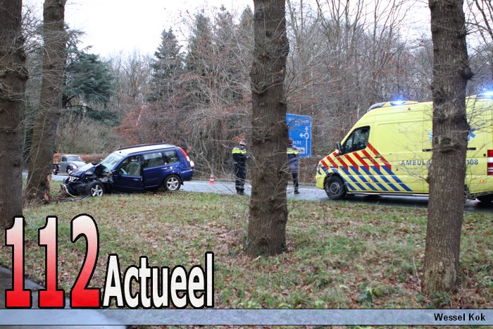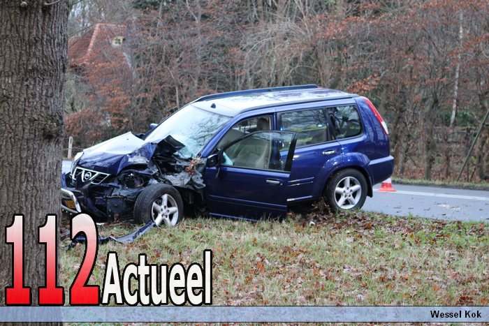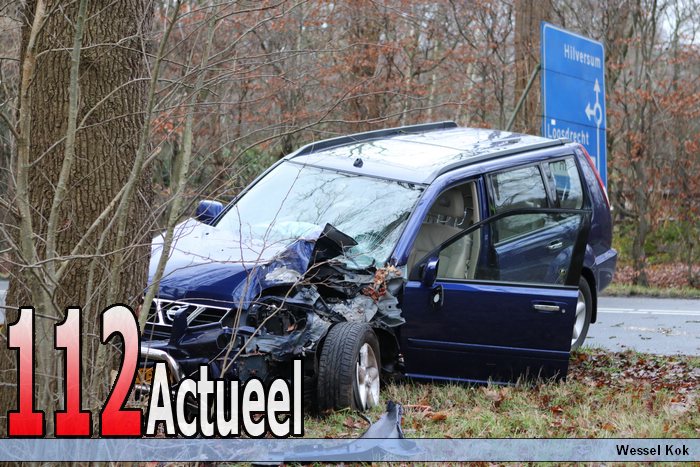 Een auto is vrijdagmiddag bij een eenzijdig ongeval tegen een boom gebotst op de Tolakkerweg/Utrechtseweg [N417] tussen Hollandsche Rading en Hilversum. De bestuurder raakte lichtgewond.