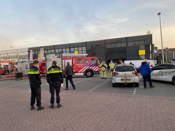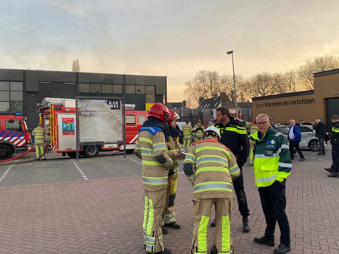 Bij rijschool Jan ter Beek op bedrijventerrein De Nieuwe Vaart in Bussum is donderdagmorgen een grote brand uitgebroken. Rond 7.30 uur was de brand onder controle.