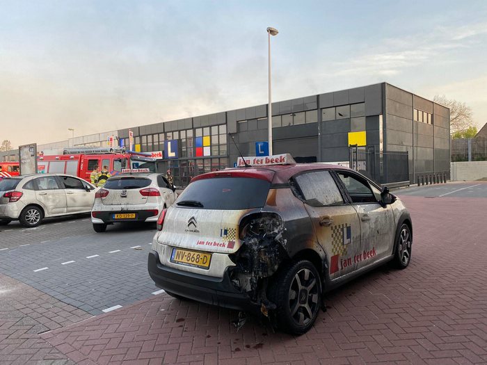 De politie kwam in eerste instantie af op een inbraakalarm en ontdekte toen de brand. Bij aankomst stonden twee lesauto’s in brand. Acht lesauto’s en meerdere scooters en motoren zijn zwaar beroet naar buiten gereden. Mogelijk zijn er meer spullen beschadigd.